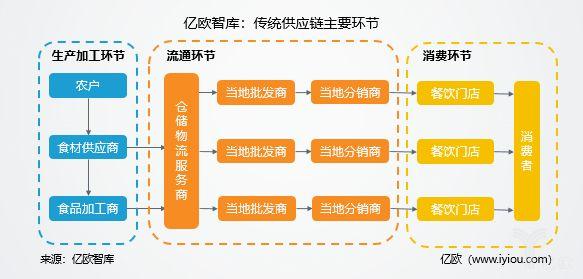 傳統的供應鏈模式,店面管理者或廚師依據以往經驗確定采購規模,并自行組織前往市場批發采購。該過程極不規范:在散亂市場采購的食材品質無法保障,基于主觀判定的餐飲店采購管理粗放,供需兩端信息不對稱,供應鏈中間經銷商過多導致價格偏高。在餐飲業尚處于快速發展、政策管制寬松的階段,以上問題尚不足嚴重影響餐廳經營。伴隨餐飲業進入充分競爭和規范化時期,餐廳的采購和管理成本開始提高。