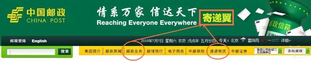 如圖示,幾個具體業務分欄中,郵政業務和速遞物流就是寄遞翼。其中——