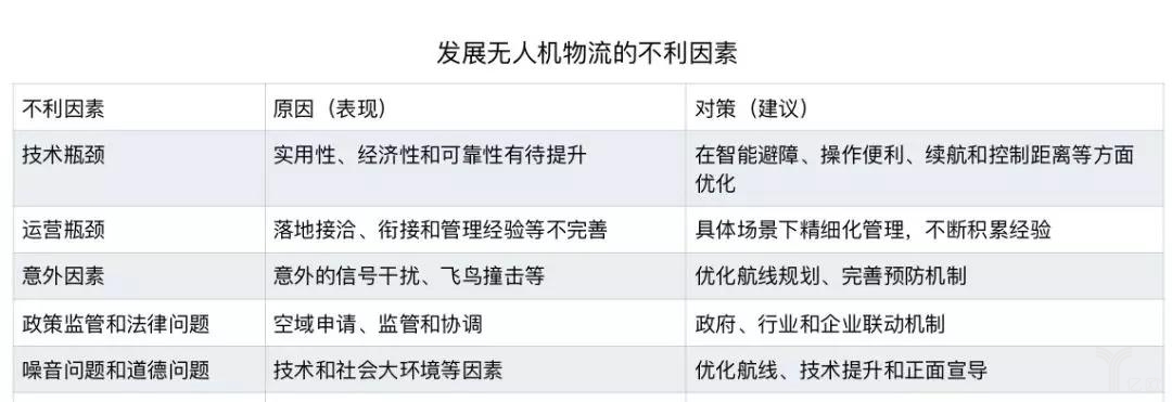 前文提到,無人機物流具有眾多優勢,但為什么在幾年后它仍然沒有被推廣呢?新技術具有兩面性,尤其在應用的初期,由于它們自身不夠完善,加上經驗不足以及受社會公眾的思維習慣等影響,發展往往存在遲緩和反復的情況??陀^來說,當前開展無人機物流存在以下不利因素: