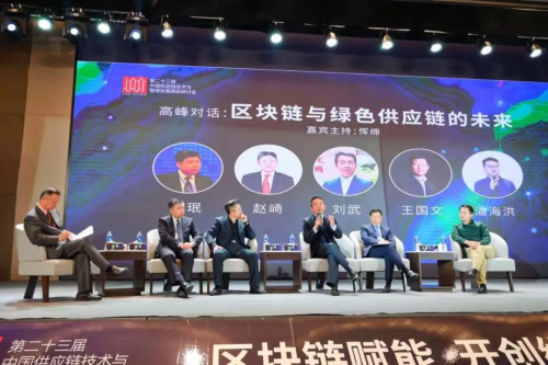 在隨后的高峰對話環節,由“物流行業金牌主持”、中國物流學會副會長、中國物流與采購聯合會常務理事惲綿主持。中物聯區塊鏈分會執行秘書長潘海洪、寶供物流企業集團董事長劉武、中國(深圳)綜合開發研究院物流與供應鏈管理研究所所長王國文、北京樂思門咨詢總經理、中物聯采購委專家組組長、中國物流協會常務理事胡珉、德國4flow咨詢副總裁趙崎等重磅嘉賓圍繞著“區塊鏈與綠色供應鏈的未來”進行智慧碰撞。