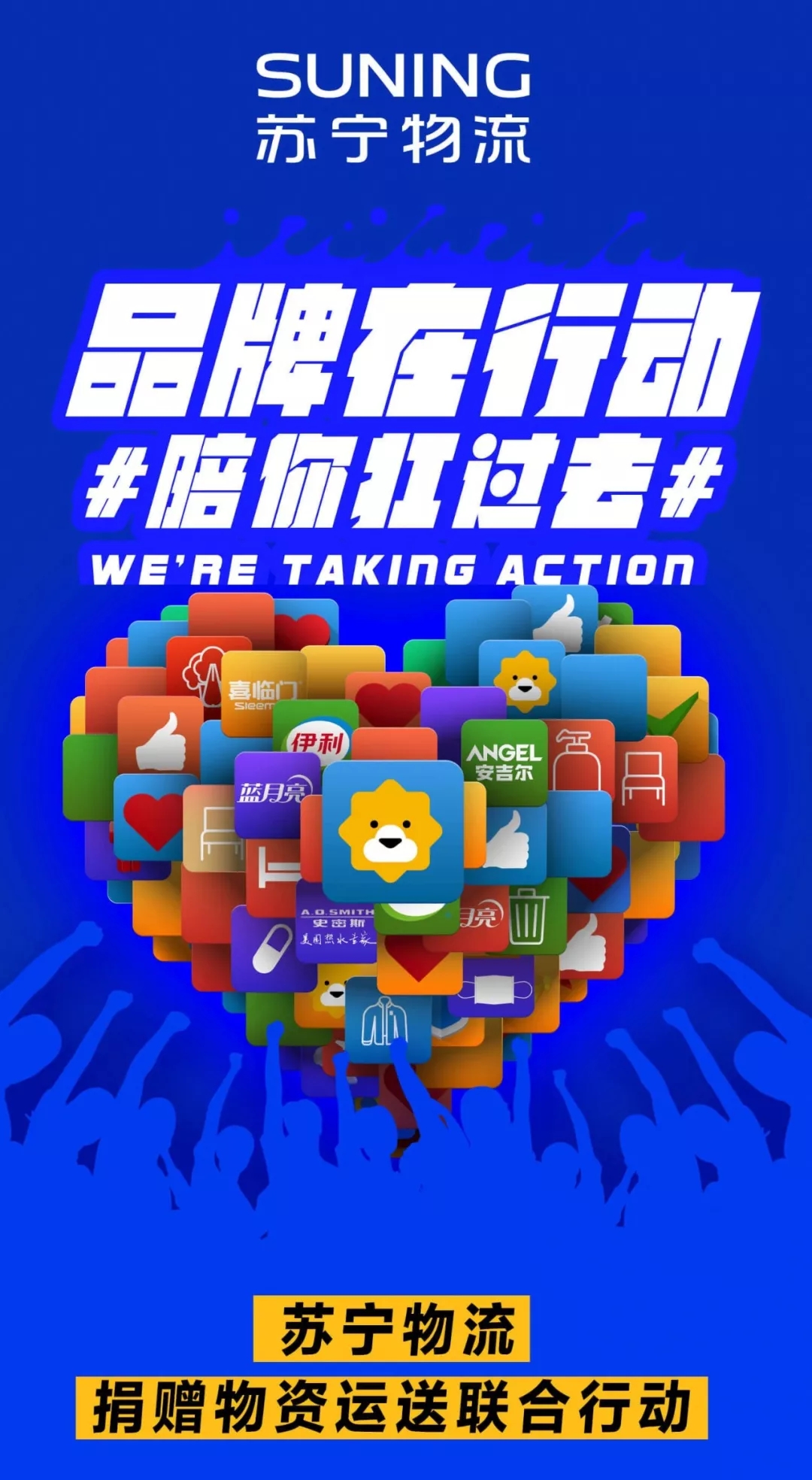 蘇寧承諾,“品牌在行動”中愛心企業捐贈的防護物資、民生物資等,都將由蘇寧物流免費安全配送。