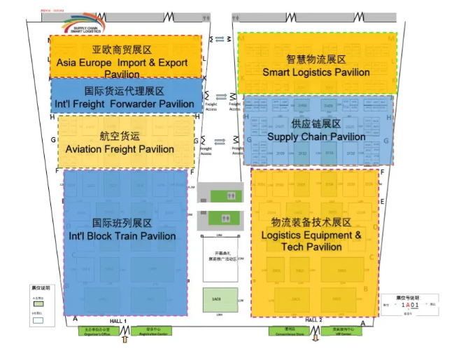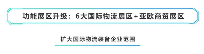 本屆國際供應鏈物流展共設立7大功能展區:國際班列展區、航空貨運展區、國際貨運代理展區、智慧物流展區、供應鏈展區、物流技術裝備展區和亞歐商貿展區。
