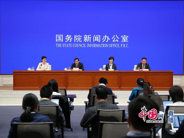 圖為國務院新聞辦新聞局副局長、新聞發言人襲艷春主持發布會。中國網 楊佳 攝