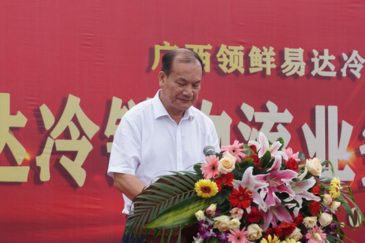 廣西領鮮易達冷鏈供應鏈有限公司董事長林貽團在致辭中講到目前公司運力情況及后期的發展規劃,立足廣西,通達四海,為民生保障貢獻一份力量。