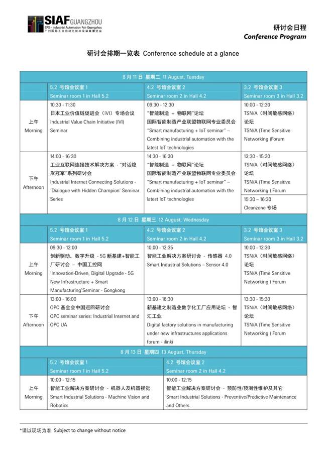 SIAF將與德國Weka Fachmedien和Avnu聯盟合作,把TSN/A 論壇帶到廣州。以研究標準的技術方面以及行業中與應用相關為主題,呈現的內容為:半導體制造商將對TSN路線圖進行匯報;控制和交換機制造商將發表他們對其當前基于TSN的產品開發的見解; 現場總線代表將解釋他們的遷移路徑。