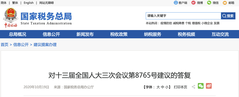 國家稅務總局辦公廳10月19日專門針對“關于從稅收政策和征管方式等方面加大平臺經濟發展支持力度的建議(全國人大三次會議第8765號建議)“給出具體答復,這是國家稅務總局第一次對網絡貨運平臺進項抵扣票據的合規性作出明確答復。答復公布后,網絡貨運平臺企業普遍表示歡迎。