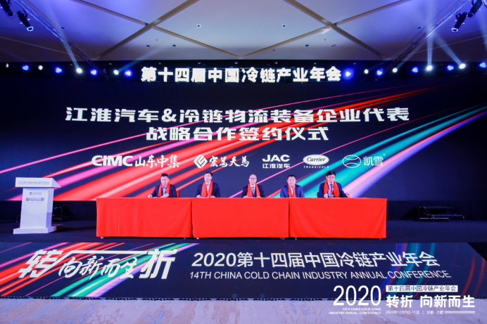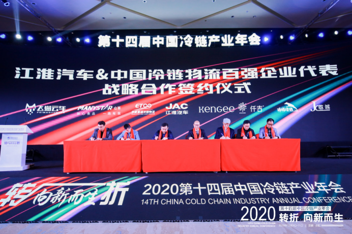 年會上,江淮汽車作為行業領先的冷藏車生產企業,與飛貓云年、上海眾萃物流、華夏易通冷鏈、仟吉食品、冰峰冷鏈物流、上海敬誠物流、山東中集、宏昌天馬、開利中國、凱雪冷鏈簽署戰略合作協議,共同打造更加符合中國冷鏈物流企業需求,滿足行業發展標準的冷藏車輛。