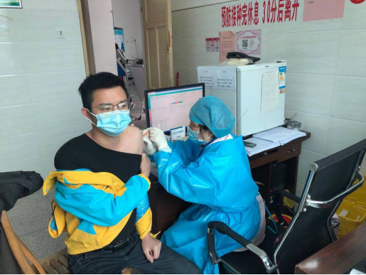 (福州閩侯縣蘇寧快遞員正在接種疫苗)