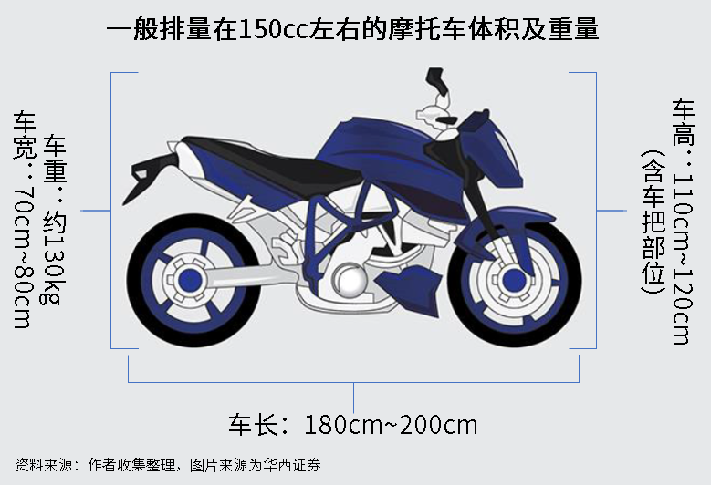 一臺(tái)排量在150cc的摩托車重量大概在130kg左右,車長(zhǎng)在180cm~200cm左右,寬度70cm-80cm左右,高度(車把部位)一般在110cm-120cm左右。雖然摩托車有一定的木架、編織袋等包裝保護(hù),但摩托車的大重量、大體積與不規(guī)則的外形,使得摩托車在搬運(yùn)過程中基本都需要叉車進(jìn)行操作,并小心輕放,防止在搬運(yùn)過程中出現(xiàn)不必要的磕碰或其他貨損發(fā)生,對(duì)物流公司的操作專業(yè)性要求較高。