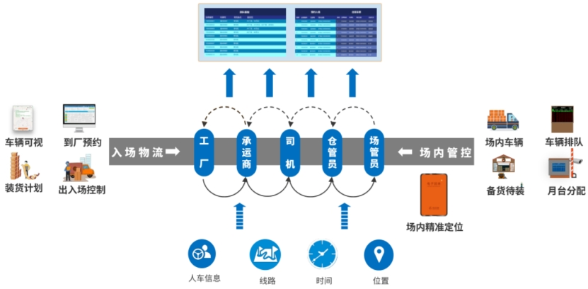 為針對性的解決這些問題,落實企業在物流各環節的精益化管理需求,物流源已經研發推出了成熟的場內可視化管控解決方案。其核心在于通過有序出入場、有序裝卸等環節的賦能,實現承運商、司機、車輛、閘口門禁、倉庫等各環節的協同管理,提升場內提貨的整體效率。