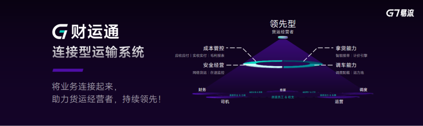作為行業(yè)首個(gè)連接型運(yùn)輸系統(tǒng),財(cái)運(yùn)通將企業(yè)業(yè)務(wù)與組織高效協(xié)同,徹底改善了物流從業(yè)者的工作方式,幫助貨運(yùn)經(jīng)營(yíng)者精細(xì)化經(jīng)營(yíng)、健康增長(zhǎng)。G7易流也將不斷打造“有結(jié)果的技術(shù)”,助力廣大貨運(yùn)經(jīng)營(yíng)者們?cè)絹?lái)越先進(jìn),持續(xù)領(lǐng)先!