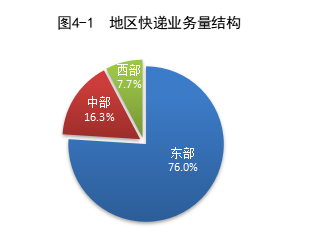 1-5月,東、中、西部地區(qū)快遞業(yè)務(wù)量比重分別為76.0%、16.3%和7.7%,業(yè)務(wù)收入比重分別為76.5%、14.0%和9.5%。與去年同期相比,東部地區(qū)快遞業(yè)務(wù)量比重下降1.2個(gè)百分點(diǎn),快遞業(yè)務(wù)收入比重下降0.9個(gè)百分點(diǎn);中部地區(qū)快遞業(yè)務(wù)量比重上升1.0個(gè)百分點(diǎn),快遞業(yè)務(wù)收入比重上升0.7個(gè)百分點(diǎn);西部地區(qū)快遞業(yè)務(wù)量和快遞業(yè)務(wù)收入比重均上升0.2個(gè)百分點(diǎn)。