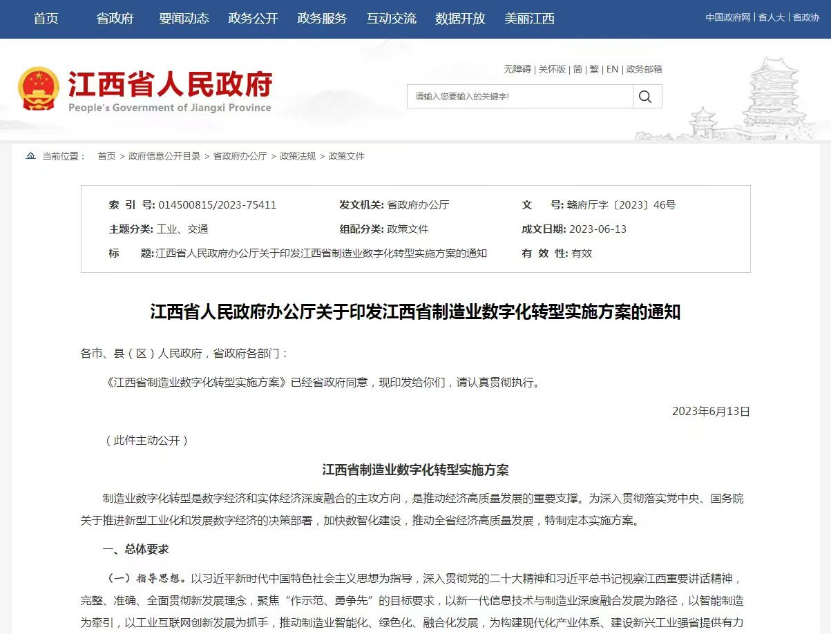 據“江西省人民政府”微信公眾號消息,為加快數智化建設,推動全省經濟高質量發展,江西省人民政府辦公廳近日印發《江西省制造業數字化轉型實施方案》(以下簡稱《實施方案》)。