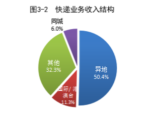 1-8月,同城、異地、國際/港澳臺快遞業(yè)務(wù)量分別占全部快遞業(yè)務(wù)量的10.3%、87.4%和2.3%;業(yè)務(wù)收入分別占全部快遞收入的6.0%、50.4%和11.3%。與去年同期相比,同城快遞業(yè)務(wù)量的比重下降1.7個百分點(diǎn),異地快遞業(yè)務(wù)量的比重上升1.1個百分點(diǎn),國際/港澳臺業(yè)務(wù)量的比重上升0.6個百分點(diǎn)。