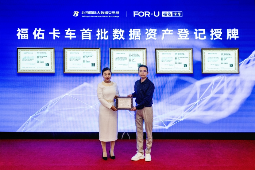 圖:北京國際大數據交易所向福佑卡車頒發數據資產登記證書
