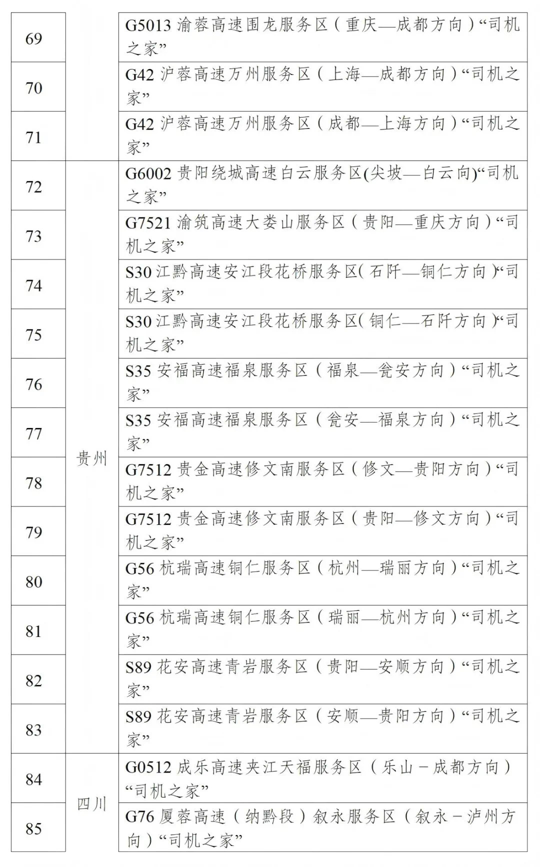 為進一步改善貨車司機停車休息環境,交通運輸部、中華全國總工會聯合印發通知,部署各地開展高速公路服務區“司機之家”標準化規范化提升行動。目前,已有100個高速公路服務區“司機之家”(名單如下)完成改造提升,為貨車司機提供停車休息、熱水供應、飯菜加熱、淋浴、洗衣等免費基本服務和可選擇的個性化服務。